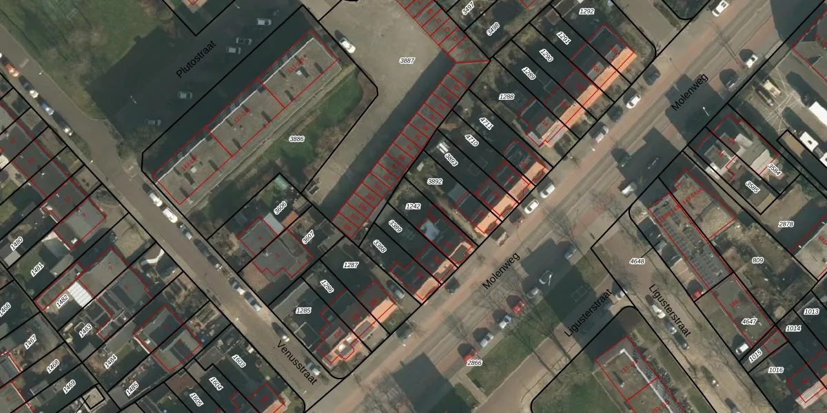 Gebruik de zoekbalk of klik op een perceel om informatie over het perceel te bekijken.
