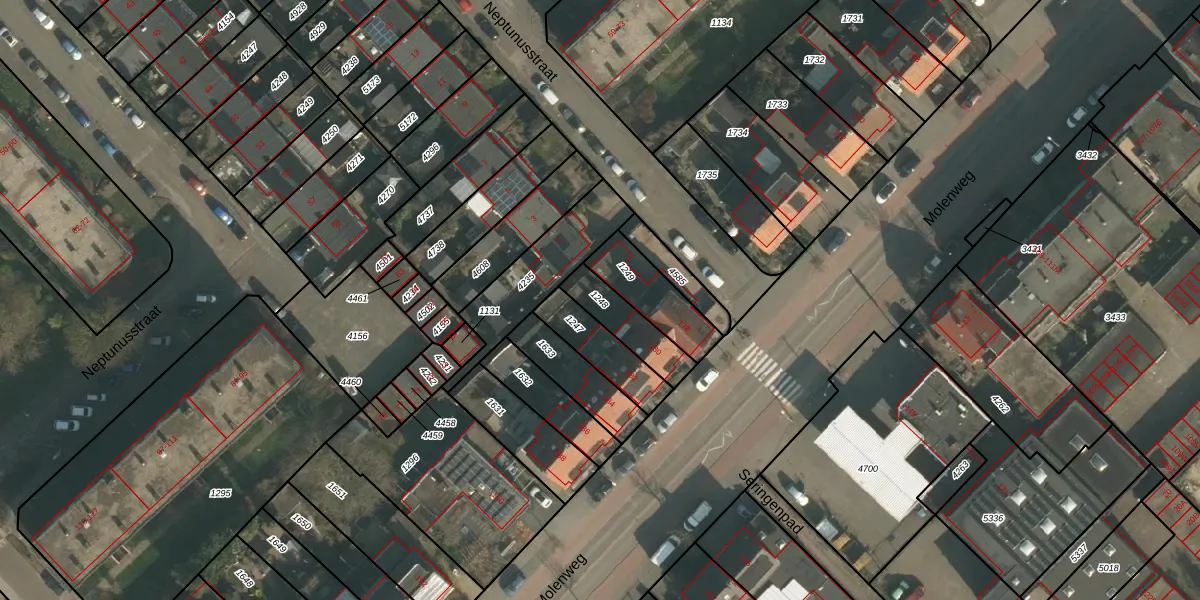 Gebruik de zoekbalk of klik op een perceel om informatie over het perceel te bekijken.