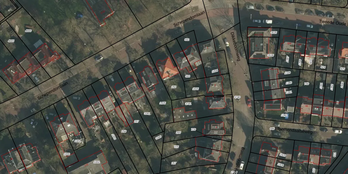 Gebruik de zoekbalk of klik op een perceel om informatie over het perceel te bekijken.