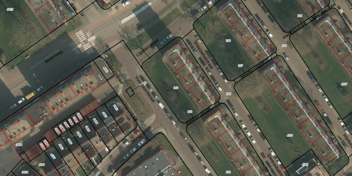 Gebruik de zoekbalk of klik op een perceel om informatie over het perceel te bekijken.