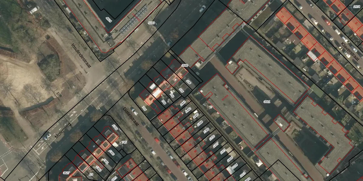 Gebruik de zoekbalk of klik op een perceel om informatie over het perceel te bekijken.