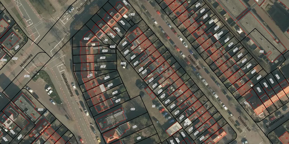 Gebruik de zoekbalk of klik op een perceel om informatie over het perceel te bekijken.
