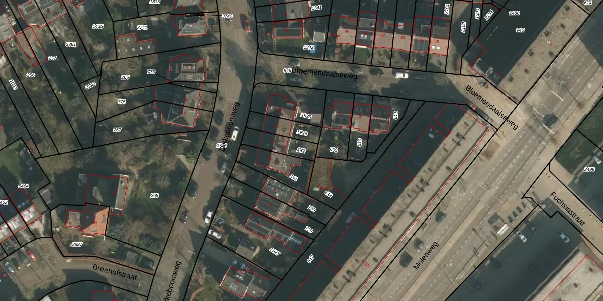 Gebruik de zoekbalk of klik op een perceel om informatie over het perceel te bekijken.
