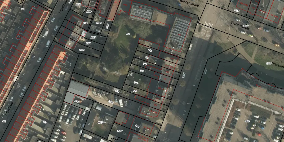 Gebruik de zoekbalk of klik op een perceel om informatie over het perceel te bekijken.