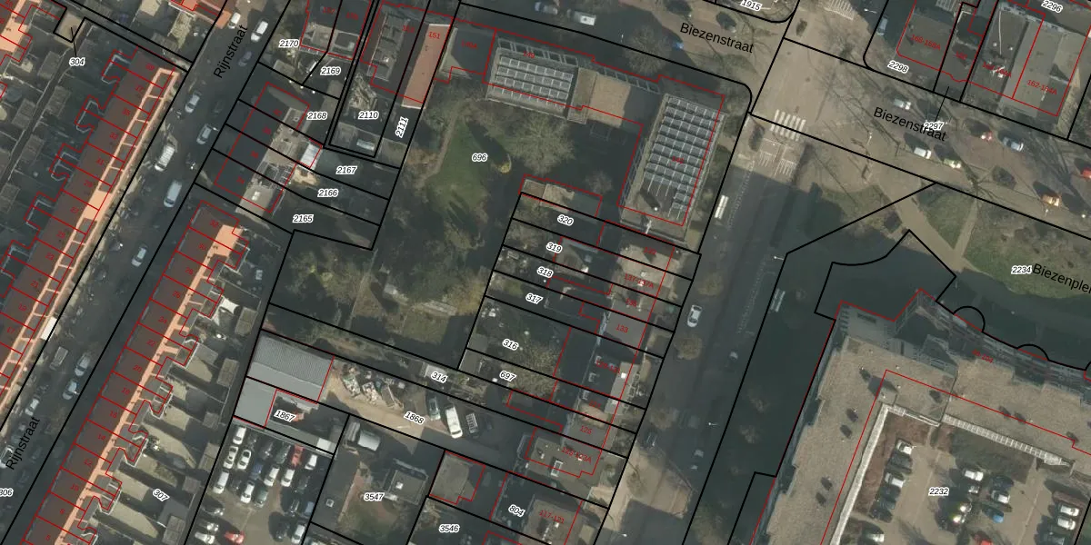 Gebruik de zoekbalk of klik op een perceel om informatie over het perceel te bekijken.