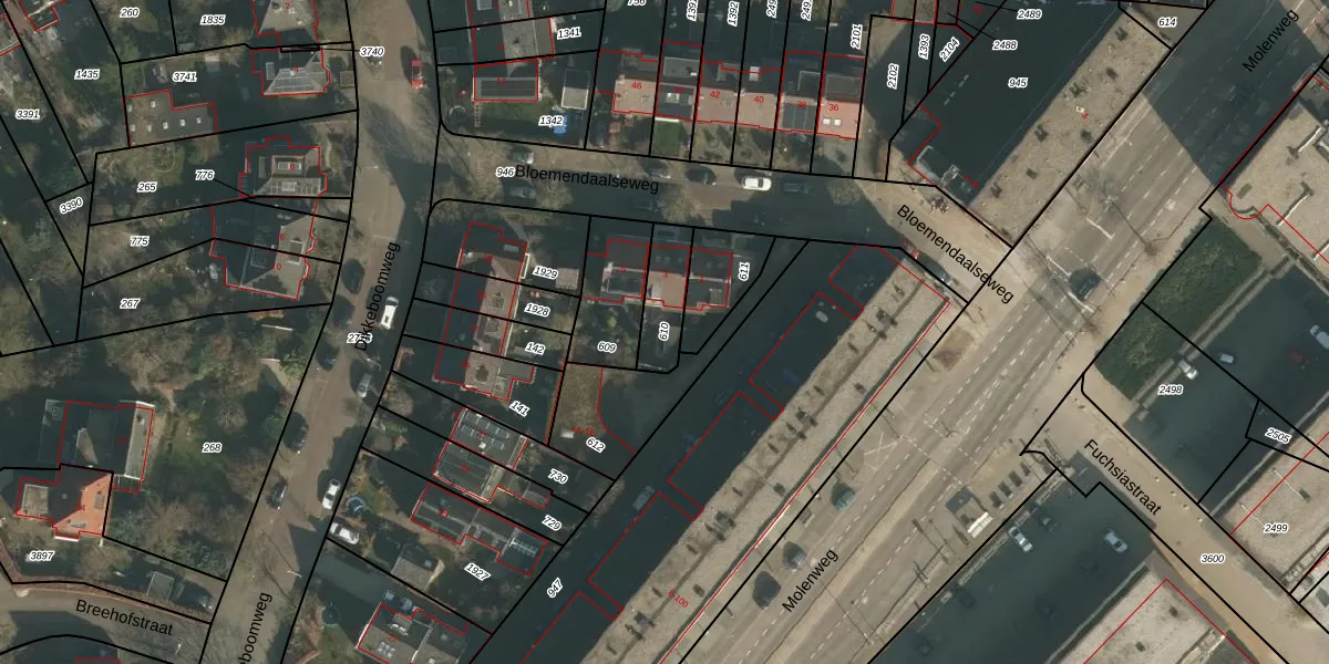 Gebruik de zoekbalk of klik op een perceel om informatie over het perceel te bekijken.