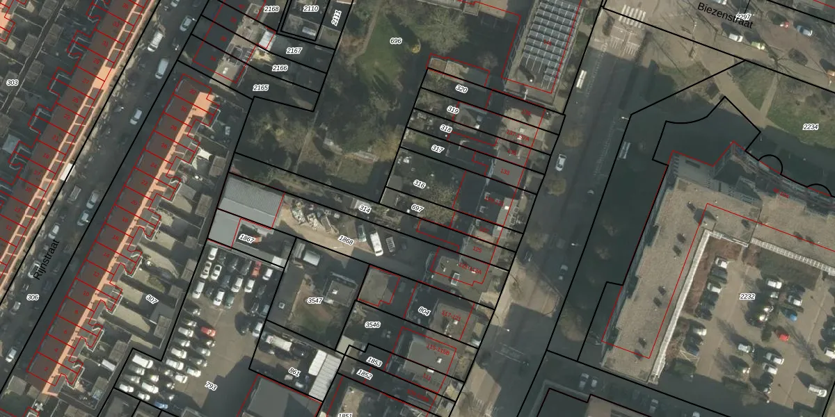 Gebruik de zoekbalk of klik op een perceel om informatie over het perceel te bekijken.