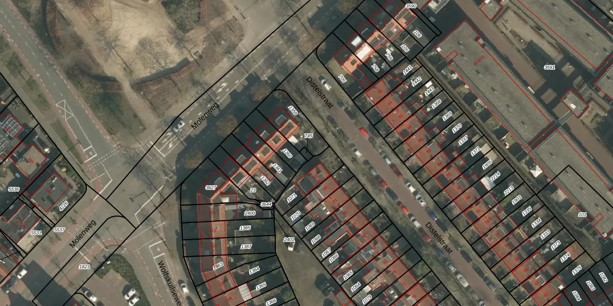 Gebruik de zoekbalk of klik op een perceel om informatie over het perceel te bekijken.