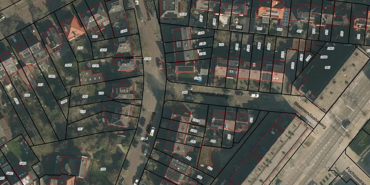 Gebruik de zoekbalk of klik op een perceel om informatie over het perceel te bekijken.