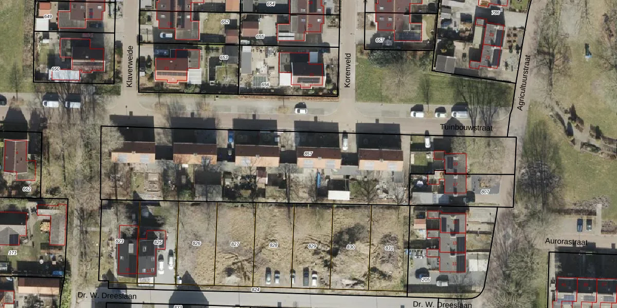 Gebruik de zoekbalk of klik op een perceel om informatie over het perceel te bekijken.