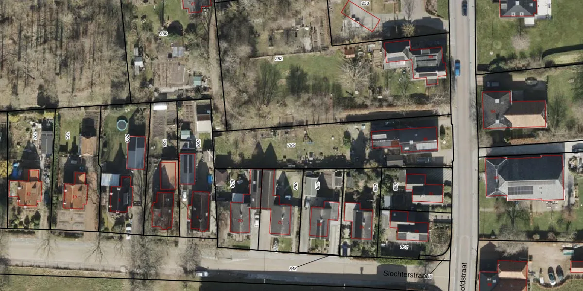 Gebruik de zoekbalk of klik op een perceel om informatie over het perceel te bekijken.