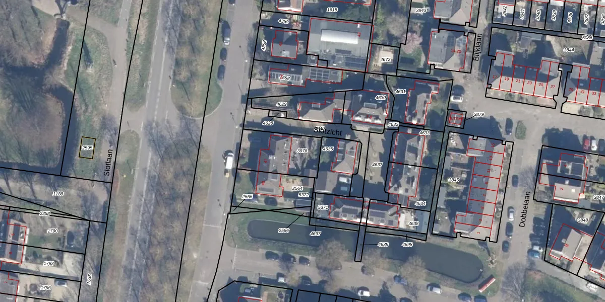 Gebruik de zoekbalk of klik op een perceel om informatie over het perceel te bekijken.