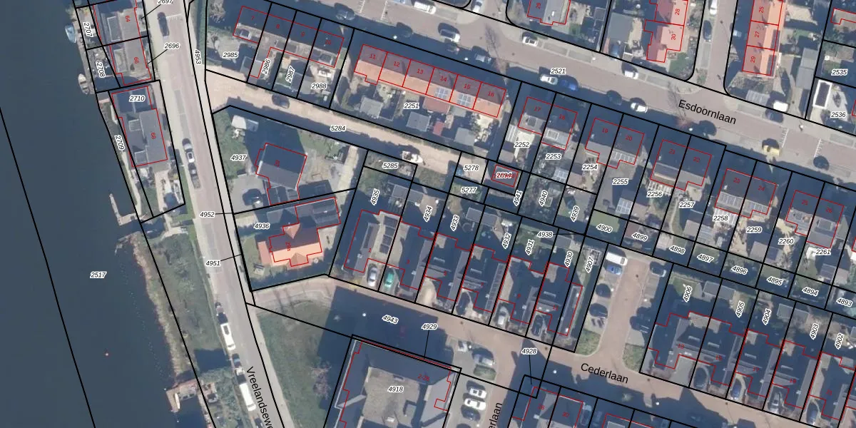 Gebruik de zoekbalk of klik op een perceel om informatie over het perceel te bekijken.