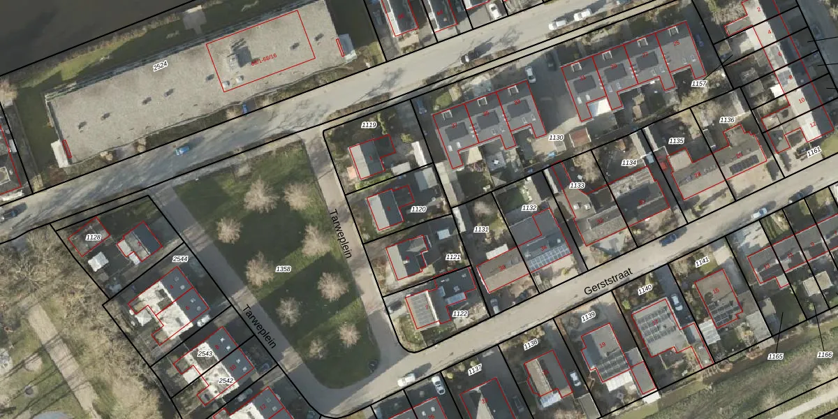 Gebruik de zoekbalk of klik op een perceel om informatie over het perceel te bekijken.