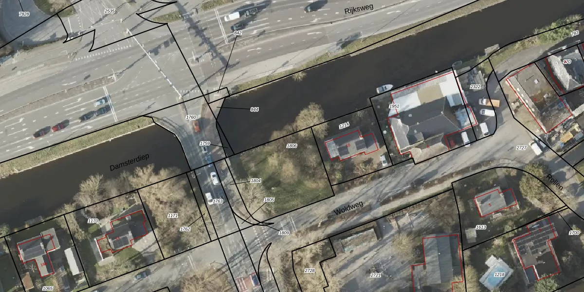 Gebruik de zoekbalk of klik op een perceel om informatie over het perceel te bekijken.
