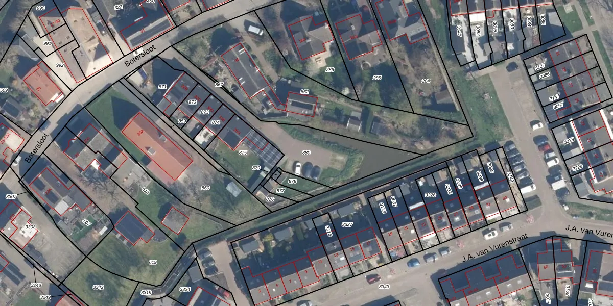Gebruik de zoekbalk of klik op een perceel om informatie over het perceel te bekijken.