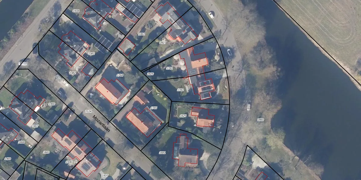 Gebruik de zoekbalk of klik op een perceel om informatie over het perceel te bekijken.