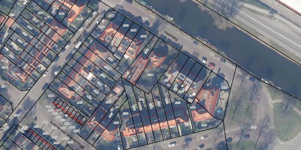 Gebruik de zoekbalk of klik op een perceel om informatie over het perceel te bekijken.