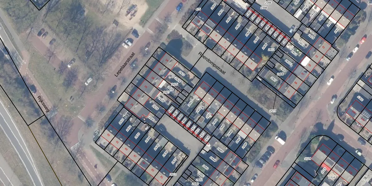 Gebruik de zoekbalk of klik op een perceel om informatie over het perceel te bekijken.