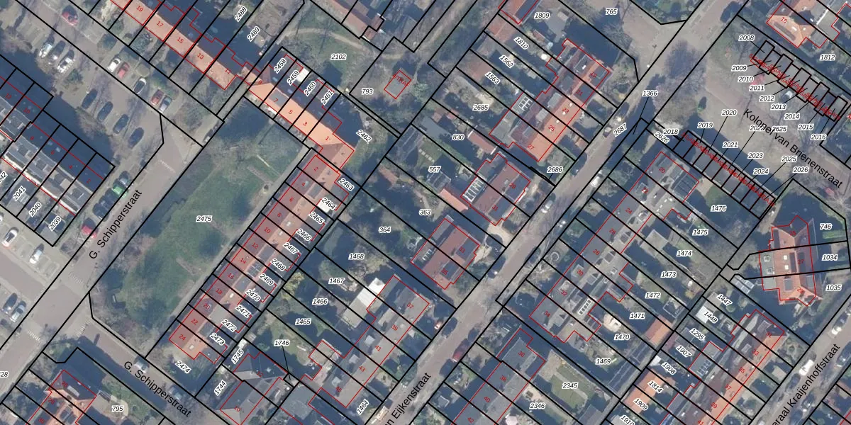 Gebruik de zoekbalk of klik op een perceel om informatie over het perceel te bekijken.