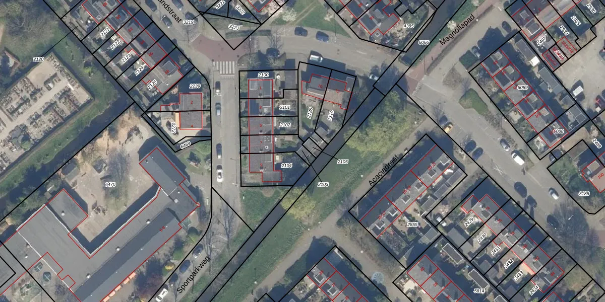 Gebruik de zoekbalk of klik op een perceel om informatie over het perceel te bekijken.