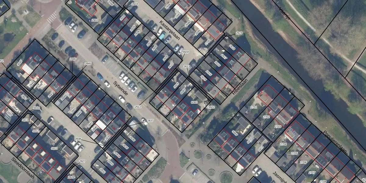 Gebruik de zoekbalk of klik op een perceel om informatie over het perceel te bekijken.