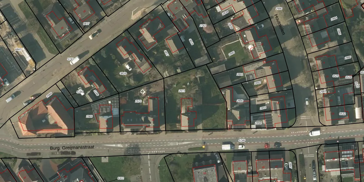 Gebruik de zoekbalk of klik op een perceel om informatie over het perceel te bekijken.