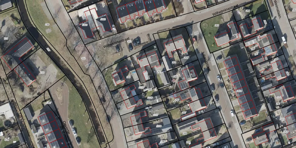 Gebruik de zoekbalk of klik op een perceel om informatie over het perceel te bekijken.