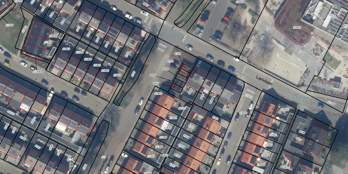 Gebruik de zoekbalk of klik op een perceel om informatie over het perceel te bekijken.