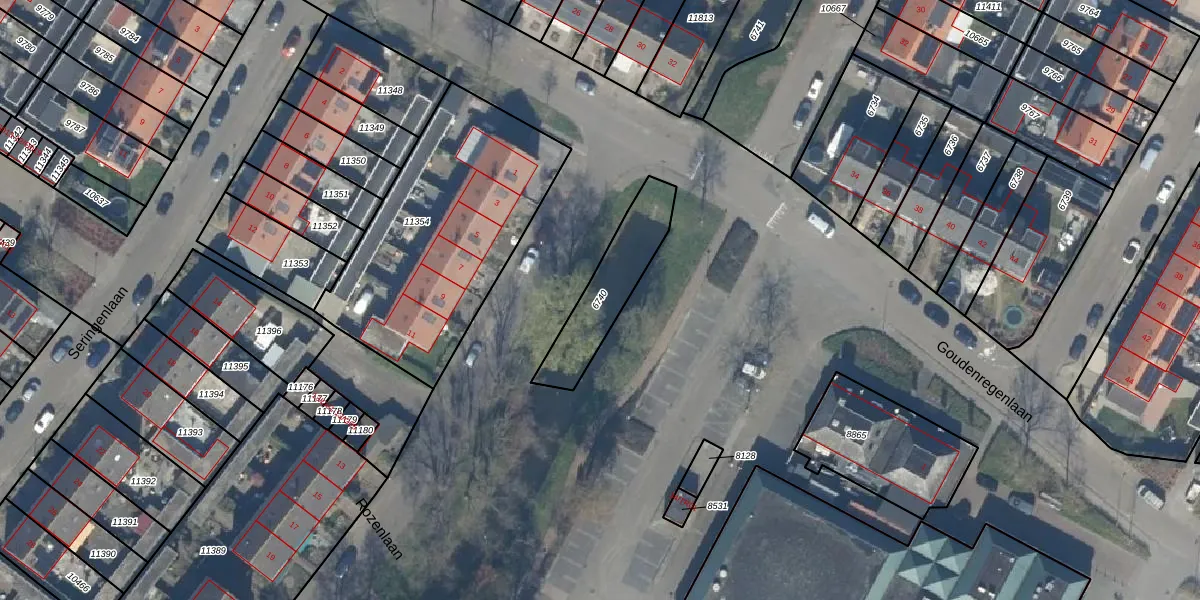 Gebruik de zoekbalk of klik op een perceel om informatie over het perceel te bekijken.