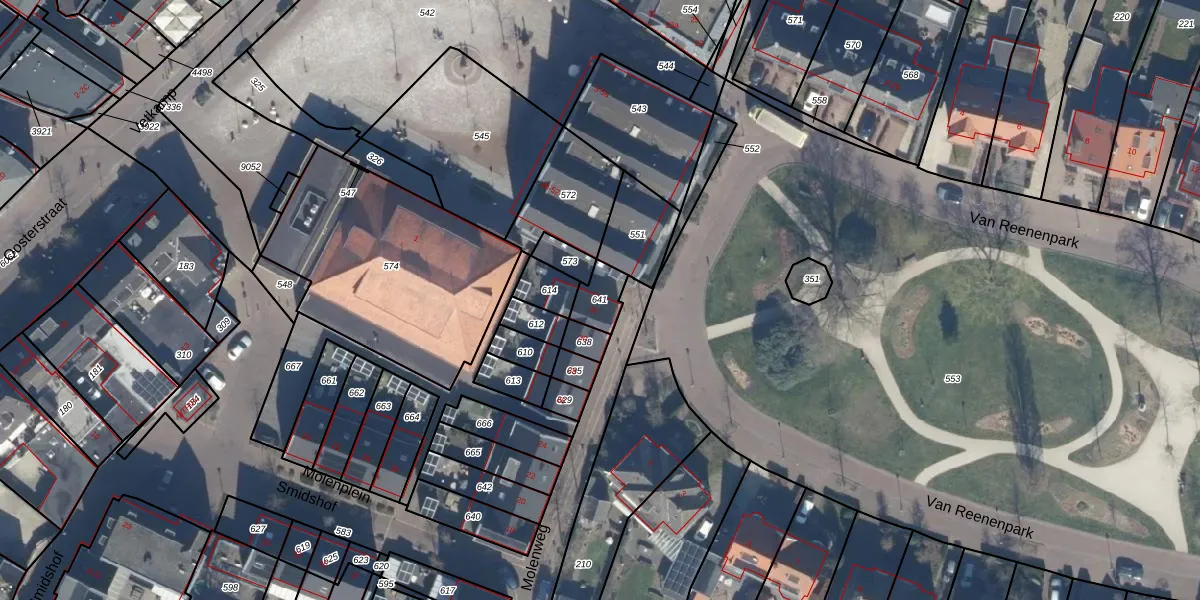 Gebruik de zoekbalk of klik op een perceel om informatie over het perceel te bekijken.