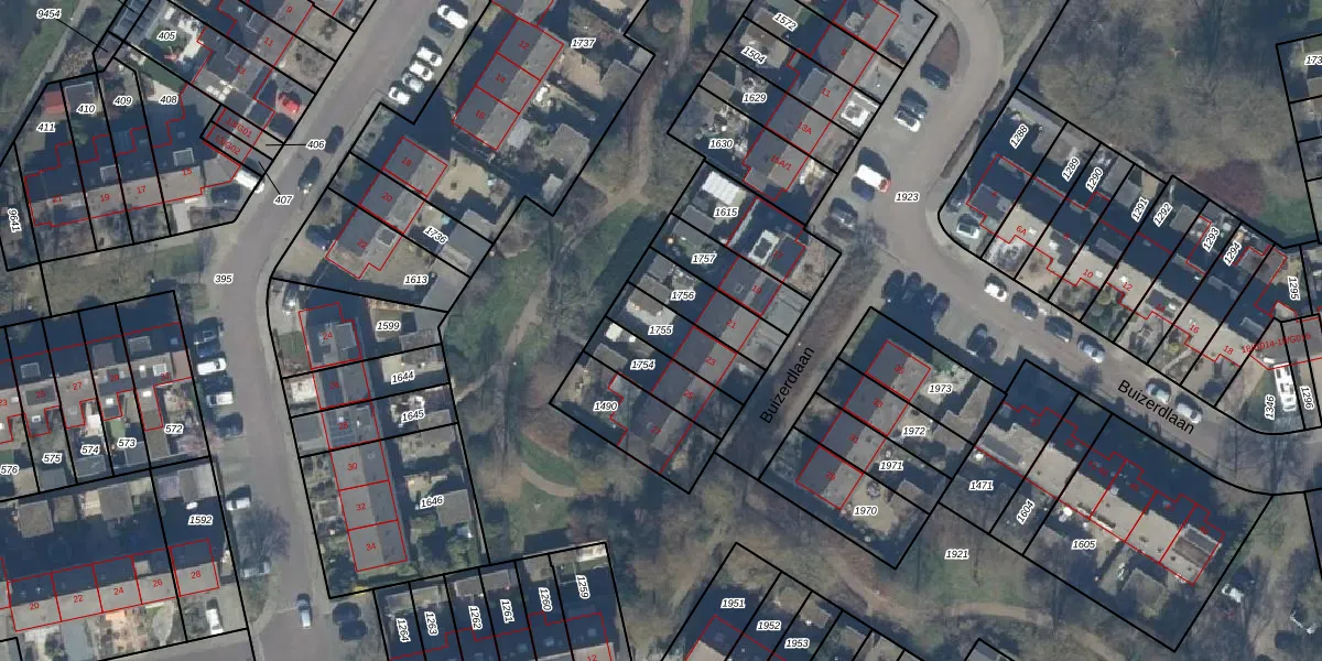 Gebruik de zoekbalk of klik op een perceel om informatie over het perceel te bekijken.