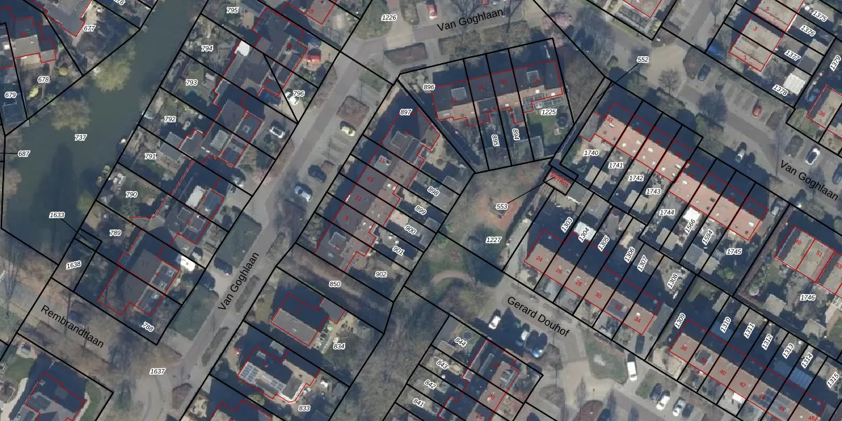 Gebruik de zoekbalk of klik op een perceel om informatie over het perceel te bekijken.