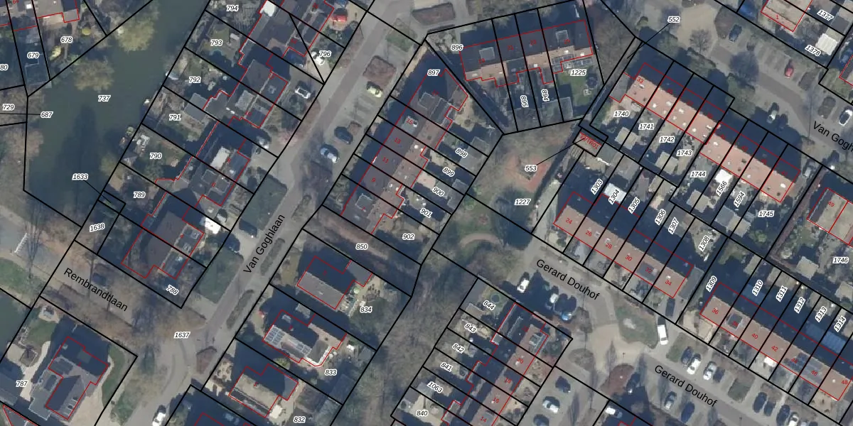 Gebruik de zoekbalk of klik op een perceel om informatie over het perceel te bekijken.