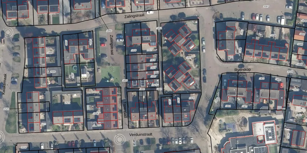 Gebruik de zoekbalk of klik op een perceel om informatie over het perceel te bekijken.