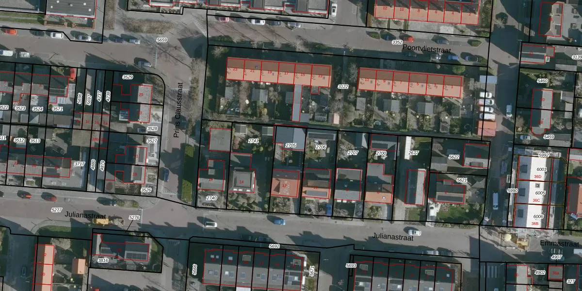 Gebruik de zoekbalk of klik op een perceel om informatie over het perceel te bekijken.