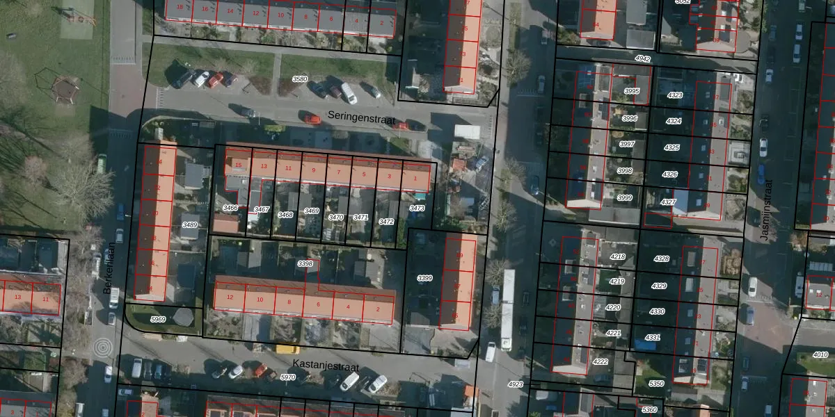 Gebruik de zoekbalk of klik op een perceel om informatie over het perceel te bekijken.