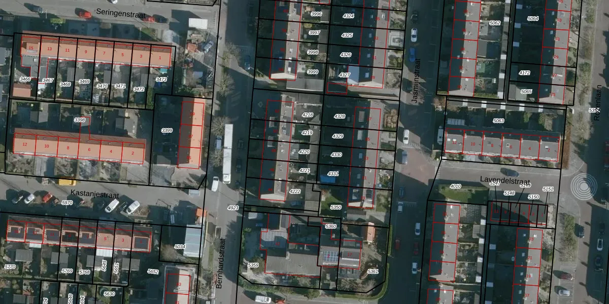 Gebruik de zoekbalk of klik op een perceel om informatie over het perceel te bekijken.