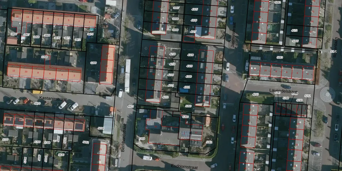 Gebruik de zoekbalk of klik op een perceel om informatie over het perceel te bekijken.
