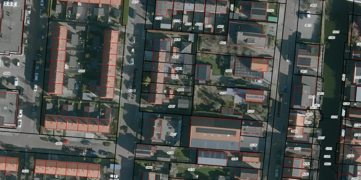 Gebruik de zoekbalk of klik op een perceel om informatie over het perceel te bekijken.
