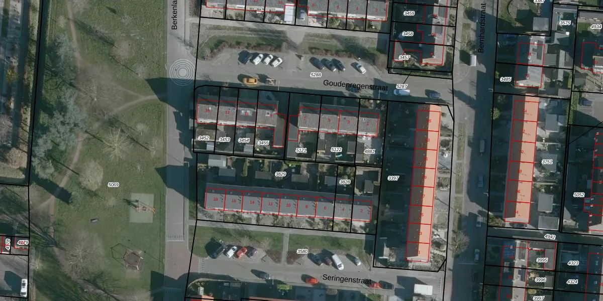 Gebruik de zoekbalk of klik op een perceel om informatie over het perceel te bekijken.