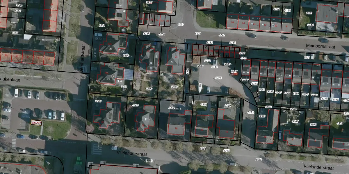 Gebruik de zoekbalk of klik op een perceel om informatie over het perceel te bekijken.