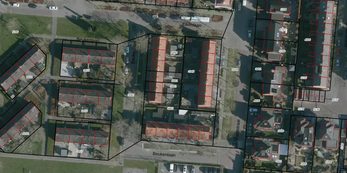 Gebruik de zoekbalk of klik op een perceel om informatie over het perceel te bekijken.