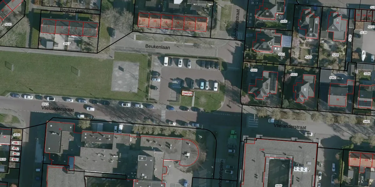 Gebruik de zoekbalk of klik op een perceel om informatie over het perceel te bekijken.