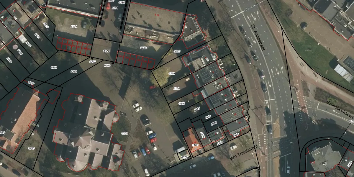 Gebruik de zoekbalk of klik op een perceel om informatie over het perceel te bekijken.