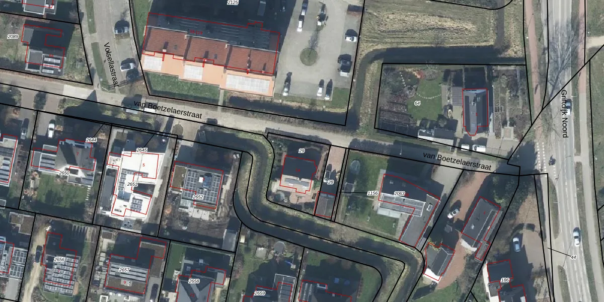 Gebruik de zoekbalk of klik op een perceel om informatie over het perceel te bekijken.