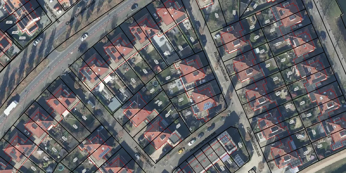 Gebruik de zoekbalk of klik op een perceel om informatie over het perceel te bekijken.