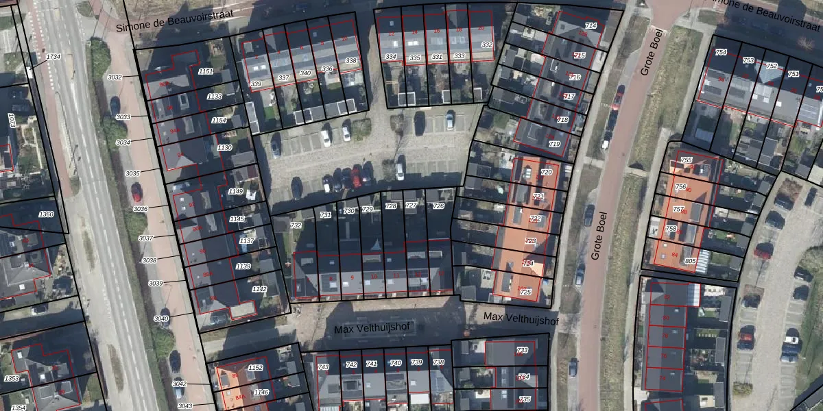 Gebruik de zoekbalk of klik op een perceel om informatie over het perceel te bekijken.