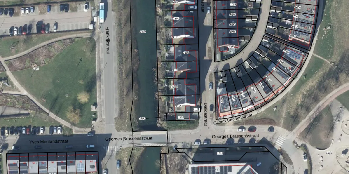 Gebruik de zoekbalk of klik op een perceel om informatie over het perceel te bekijken.