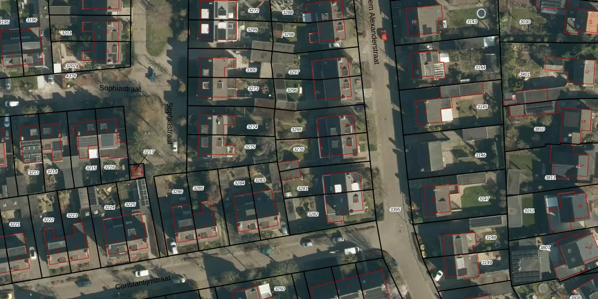 Gebruik de zoekbalk of klik op een perceel om informatie over het perceel te bekijken.
